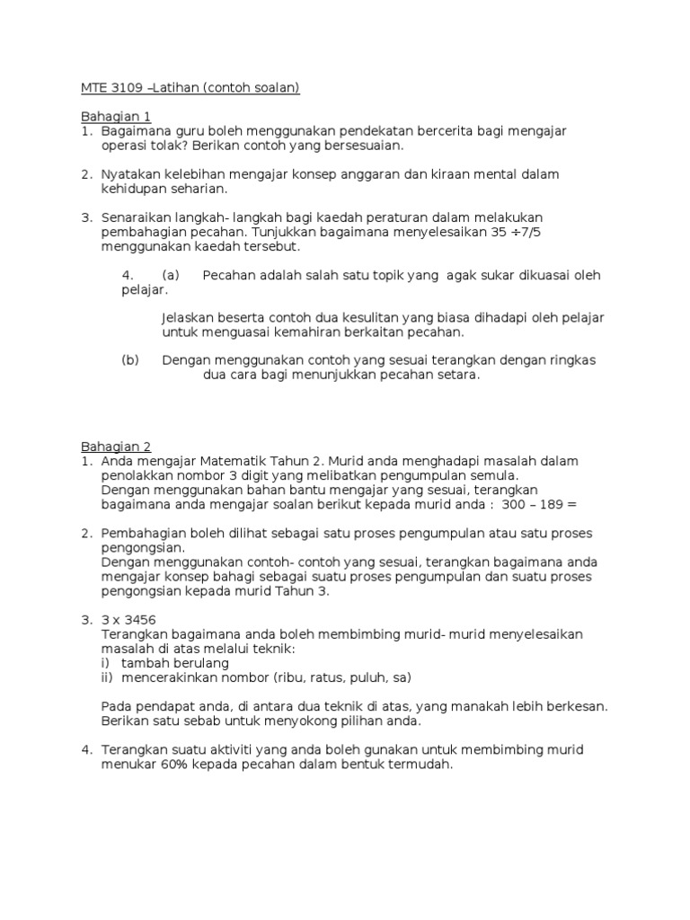 Contoh Teknik Bercerita Dalam Soalan Matematik